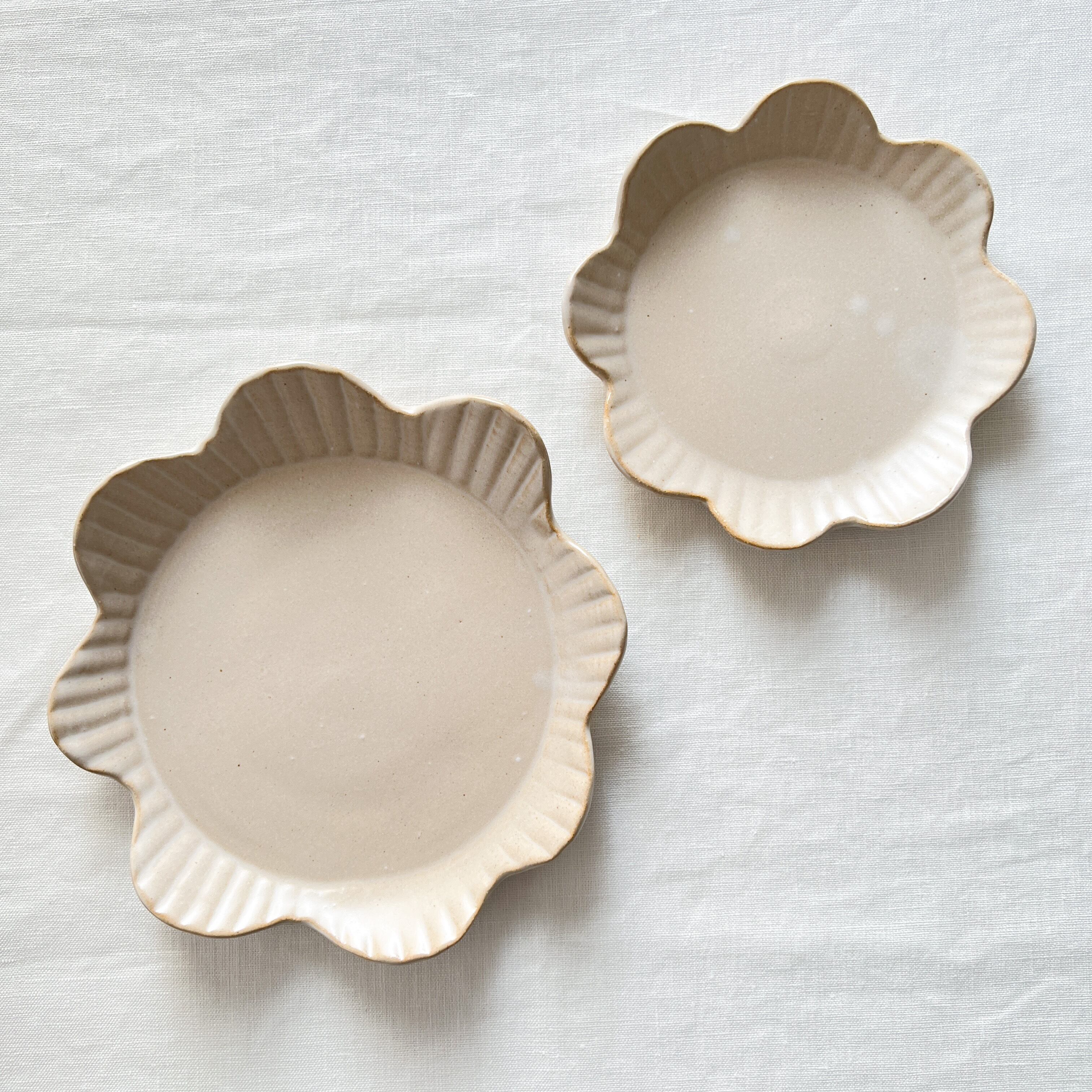 同じシリーズで、一回り小さいサイズの花皿と同じ大きさで色違いのお皿もございます。